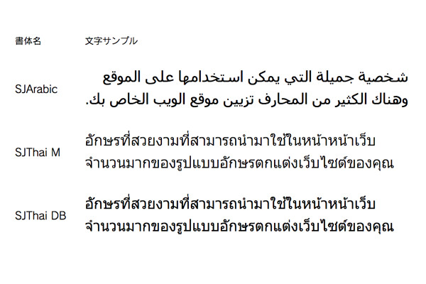 今回、提供開始するのは、アラビア語とタイ語の2つフォントで、すでに実装済みの中国語と韓国語に加えて、新たな2言語に対応したことにより、同サービス提供されるフォントは、5言語、総計800種類以上となった。