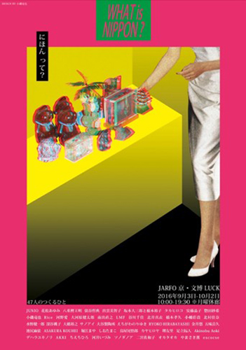 2016年9月3日(土)から10月2日(日)まで、「JARFO 京・文博 LUCK(ジャルホ キョウ・ブンパク ラック)」にて、「『にほん って?』〜47人のつくるひと〜」が開催されている。47都道府県の出身者もしくは在住者に注目し、各都道府県から1名ずつが参加。それぞれの土地からインスピレーションを得て制作した作品を展示販売している。月曜定休で、営業時間は10:00〜19:00。