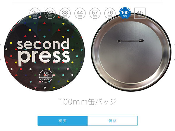 オリジナル缶バッジ製造サービス「secondpress」が最大10cmサイズの取り扱い開始