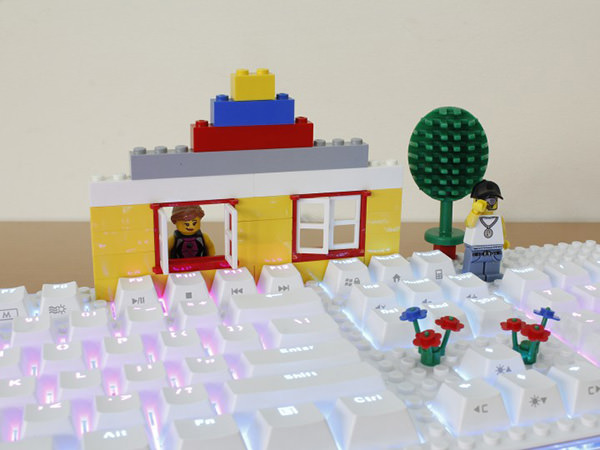 本製品は英語配列104キーを搭載しており、Windows 10 / 8.1 / 8 / 7に対応している。表面がブロックを装着できるプレートになっており、キーボード上に家を建てたり、車を走らせたりと、童心に帰って自由なデコレーションが可能だ。キーピッチは約19mm、キーストロークは約4mmで、カチカチとした心地良い入力感ながら静音性も高いメカニカルキースイッチを採用。Nキーロールオーバーにも対応している。