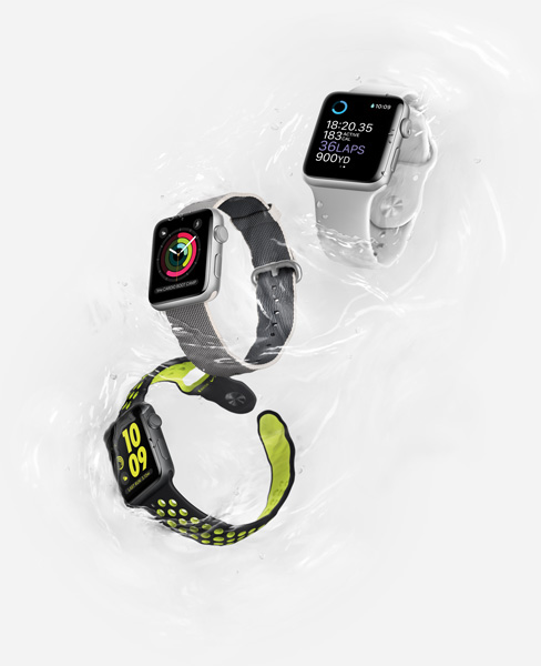 「Series 2」では、新たにGPSを内蔵し、iPhoneを家に置いたままランニングやサイクリングに出かけても、ワークアウトを正確に測定できるようになった。また、50mまでの耐水性能を備えており、身に付けたままプールや海に入ることができる。耐水性能の実現のため、中に入った水を音の振動を使って排出する新たなスピーカーを搭載している。また、交通機関の利用やショッピングの支払いのためのApple Payも搭載している。