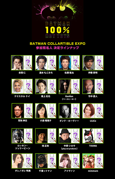 今回のイベントでは、そのホットトイズが手掛けてきた100点に及ぶバットマン関連フィギュアが飾られ、最新プロトタイプはもちろん、バットマンの世界観を再現した特製ジオラマも多数展示。「バットマン玩具ミュージアム」では、希少なブリキ玩具やヴィンテージ玩具などが紹介され、全世界の玩具メーカーによるバットマンの長い歴史を体感できる。さらに注目の企画は、日本の有名人たちがホットトイズ製1/6スケール「バットマン」フィギュアをリ・デザインした展示だ。俳優の竹中直人さんやタレントの小島瑠璃子さん、アニメ監督の荒牧伸志氏、漫画家の桂正和氏など、20名の錚々たるスターたちが参加。新たな視点による想像力に満ちたオリジナルの「バットマン」が展示される。