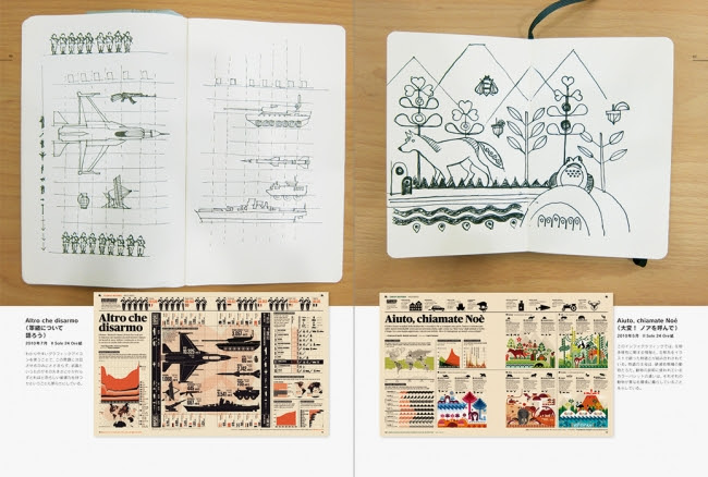 同書籍は現在、世界で活躍しているグラフィックデザイナーの作品を一挙に収録し、制作過程と共に紹介するアイデアブック。「もっと面白く、効果的で、印象に残るインフォグラフィックス」を求めているデザイナーや、アイデアの源泉を求めているクライアント、デザインを求められる機会が増えてきているエンジニアにも参考となる作品が多数収録されている。書籍には73人が手掛けた「完成作品」と「アイデアスケッチ」を掲載し、なんと639もの図版を結集。必ず思考を刺激してくれるアイデアが見つかるボリュームとなっている。