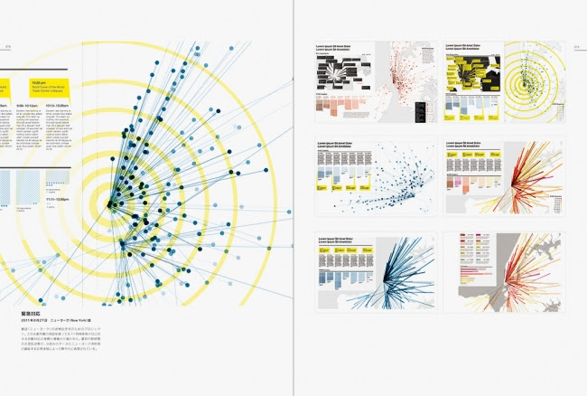 書籍では「なぜ」「どのように」「どのツールで」情報を抽出し、ヴィジュアルに置き換えていったのかを知ることが出来るインタビューも掲載。作品には「経済と企業」「アプリ開発」「医療と健康」「地球と環境」「政治」等々、実際に活用できる事例を44ジャンルにも及んで紹介しており、実際に求めているイメージに近いものから事例を探すことができる構成となっている。