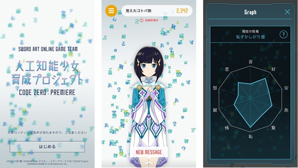 株式会社バンダイナムコエンターテインメントは、2016年10月27日(木)発売のPlayStation 4 / PlayStation Vista用ソフト「ソードアート・オンライン -ホロウ・リアリゼーション-」のスピンオフ企画として、「人工知能少女育成プロジェクト CODE ZERO:PREMIERE」を開始した。AI(人工知能)のキャラクター「プレミア」がゲームの世界を飛び出し、Webの世界でユーザーとの会話で「ことば」を学習することで、成長しながら人格を形成していく実験的プロジェクト。育成されたキャラクターは、発売後のアップデートでゲーム内への実装が予定されている。