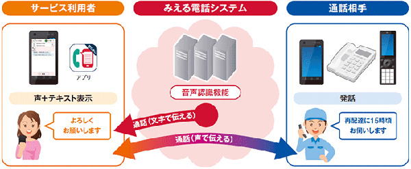 同サービスは、耳の聞こえづらい人が、電気や水道、ガスなど生活トラブル発生時や財布紛失によるクレジットカード停止処理などで困った際や、代理電話を頼めない状況でユーザー自身で電話をかける必要がある場合などに利用できる。