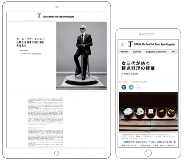 「T JAPAN」は、ニューヨーク・タイムズ社が米国で発行している「T: The New York Times Style Magazine」の日本版として、2015年3月に朝日新聞社と集英社が共同で創刊したフリーマガジン。「T JAPAN web」は、同誌のデジタル版で、「T JAPAN」の人気記事に加えて、雑誌には掲載されていない「T: The New York Times Style Magazine」の記事や、編集部が取材して書き下ろしたデジタル限定コンテンツなどを提供する。
