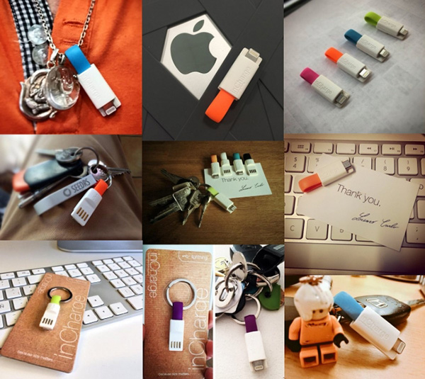 キーホルダーに巻き付けて手軽に持ち運べる長さ4cmの充電ケーブル「inCharge」