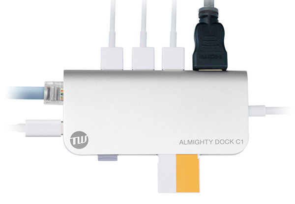 本製品は、Mac OS X El CapitanおよびmacOS Sierraに対応し、MacBookや新型MacBook ProのUSB Type-Cコネクタを拡張できる。本体にはUSB Type-A×3、USB Type-C×1、HDMI×1、Ethernet(10/100/1000BASE-T)×1と豊富なポート類に加え、SDカードスロット×1およびmicroSDカードスロット×1を用意。コンパクトな筐体ながら、製品名の通りにオールマイティーな拡張性が凝縮されている。Realtek社製などの高性能なチップが本体に採用されており、多くの周辺機器を同時に接続しても安定した通信が実現されることも特徴。筐体は1つの塊から削り出して作られた高精度のアルミニウムユニボディで、美しさだけでなく冷却性にも優れている。本体サイズは約15(幅)×106(高さ)×50(奥行)mmで、重量は約71g。
