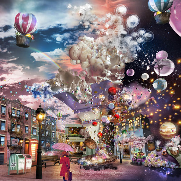 「Sweets Interaction」は、3DCGのスイーツにより、街角の建物 / ゴミ箱 / 電話ボックスなどが来場者の動きに合わせてインタラクティブに変化するコンテンツ。フランス産の天然ハチミツ専門店「Les Abeilles」とのコラボレーションで、ハチミツでできた街灯にも不思議な変化が起こる。このほかにも、本物のポップコーンでできた星やカップケーキ火山などを、デジタル演出と融合させるような仕掛けが満載の展覧会だ。本展の世界の中心となるメインオブジェの「Sweets time」は、日本のブラウニー専門店「cote cour」とのコラボレーションで、街並みをどんどん変化させる“スイーツ”が、本物のチョコレートでコーティングされたマンホールから飛び出す。