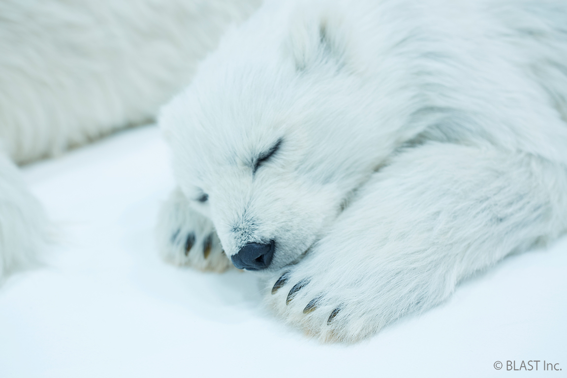 同美術品は最新特殊造形技術を結集し、実物大の動物を模して作成された動物美術造形シリーズの第一弾。剥製ではなく、造形材料を駆使して外観や質感、生物感を忠実に再現した美術品となっている。今回発売されたポーラーベアのシロクマ親子はまさに”そこで本当に眠っている”かのようなリアルな完成度となっている。