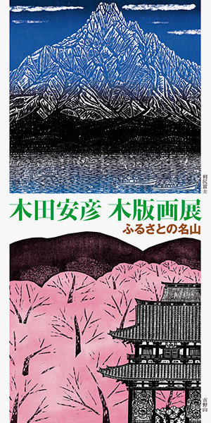 2017年1月10日(火)から3月17日(金)まで、ノエビア銀座ギャラリーにて、木版画展「ふるさとの名山」が開催される。木版画家として「三十三間堂」や「西国三十三所」などの細密なシリーズ作品を発表するほか、ガラス絵 / 板絵 / 水墨 / 書のような各種の手法を用いて活躍した木田安彦氏(1944〜2015年)の作品を紹介する展覧会。入場無料、時間は10:00〜18:00で、土日祝は17:00までの開催となっている。