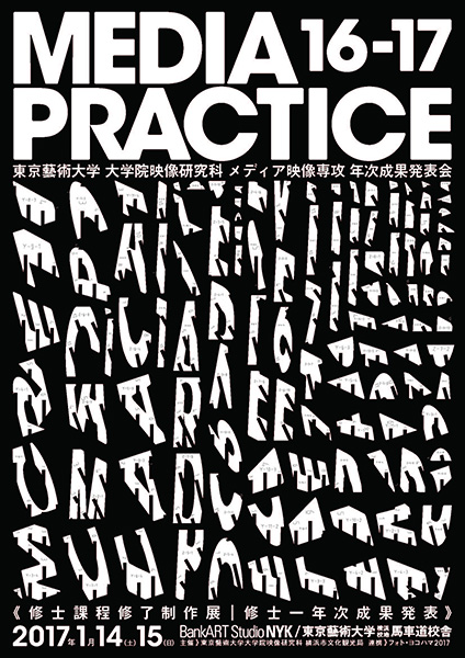 2017年1月14日(土)および1月15日(日)に、「Media Practice 16-17」が開催される。東京藝術大学大学院映像研究科メディア映像専攻の学生たちによる研究や制作を発表する展覧会で、修士2年生の修了制作と修士1年生の年次成果発表での構成。第1会場はBankART Studio NYKで、第2会場として東京藝術大学 横浜校地 馬車道校舎でもシアターでの上映が行われる。入場無料で、時間は各日11:00〜19:00(入場は18:30まで)。