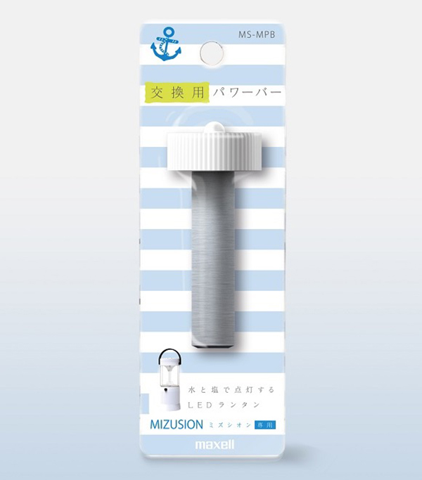 塩と水を入れると発光するLEDランタン「MIZUSION」(ミズシオン)を日立マクセルが開発