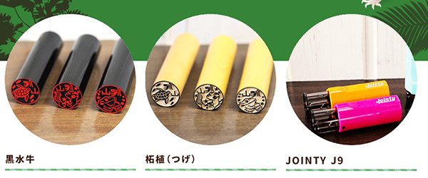 はんこ本体は、高級感のある「黒水牛」、木彫りの「柘植(つげ)」、プラスチック製でポンポン押せる「JOINTY J9」の3タイプ。