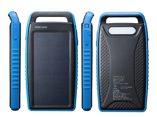 サンワダイレクト、ソーラーパネルを搭載した容量10000mAhの防雨モバイルバッテリーを発売