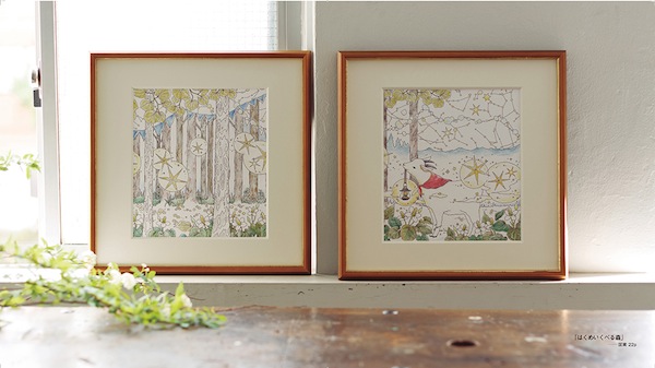 ・塗り絵を額装したスタイリングページ