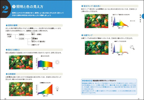 また取り外して使える別冊ブックには、検定試験本番を想定したオリジナル模擬試験問題、必ず覚えておきたい慣用色名一覧、復習に便利な用語解説を収録しており、色彩検定3級合格への近道をつかむ内容が満載となっている。