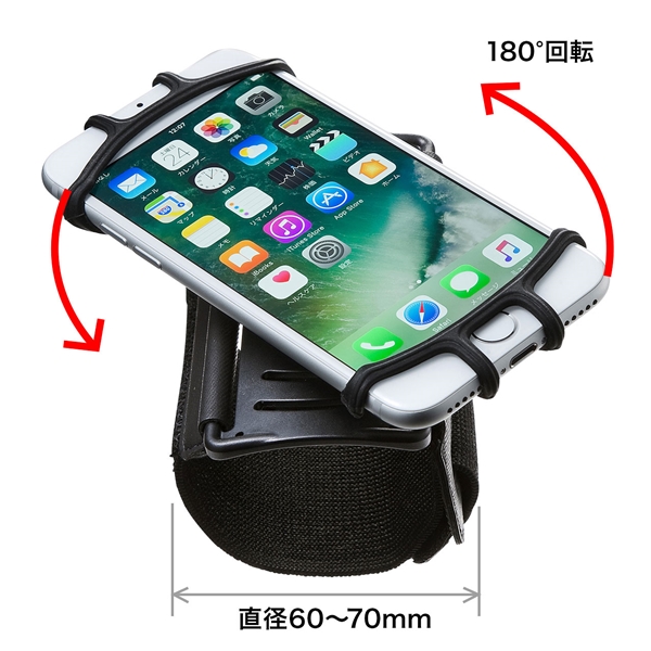 サンワサプライ、180度回転で縦・横対応のスマートフォンリストバンド「PDA-ARM6BK」