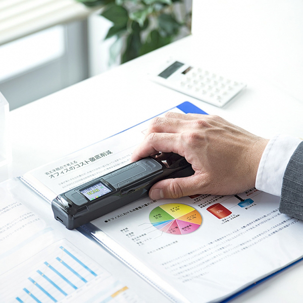 スキャン解像度は300/600/1200dpiの3種類から選択可能で、保存形式はPDF・JPEGの2種類に対応する。スキャンデータはmicroSDに直接保存することができる。本体にはディスプレイが付いており、スキャン結果などを確認できる。