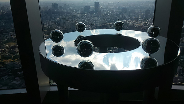 本展では、新進気鋭のメディアアーティストである落合陽一氏と、同氏が主宰する筑波大デジタルネイチャーグループのテクノロジーを駆使したアート作品が集められている。全22作品を鑑賞できるが、これは落合氏の国内展覧会としては過去最多の展示数だ。Yahoo! JAPAN紀尾井町オフィス 18Fの受付スペースや打ち合わせスペースを回遊する形式で作品を展示。落合氏が主宰するデジタルネイチャー研究室は「近代人間性の更新」をテーマに工学的実装と検証、それによる感性的な表現活動を行っており、この展覧会ではその探索 / 発見 / 社会的な問いを、テクニカルな面と鑑賞可能な面の両面から振り返る。
