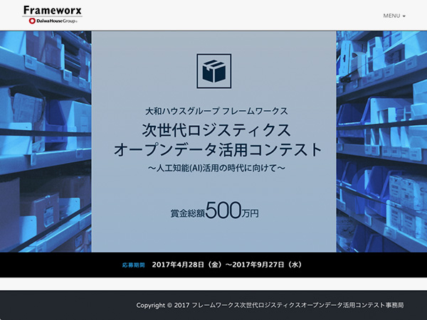 大和ハウスグループで物流システムを開発する株式会社フレームワークスと、YRPユビキタス・ネットワーキング研究所は、2017年4月28日(金)に「次世代ロジスティクスオープンデータ活用コンテスト」を開始した。株式会社フレームワークスが提供する物流 / 倉庫 / HEMS(家庭で使うエネルギーを節約するための管理システム) / 人口統計についてのオープンデータを活用した作品(アプリケーション / Webサービス / ガジェット)を募集する企画。「研究部門」では、作品のほかに調査研究レポートも募集する。応募は2017年9月27日(水)まで。