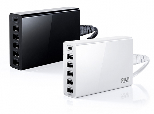 同製品は、最大6台までの機器を充電できる6ポートUSB充電器。最上部にUSB Type-Cポートを搭載しており、最大5V/3Aまでの出力を行える。他の5ポートはUSB Aポートで、自動出力判別機能「Smart USB System」を搭載している。