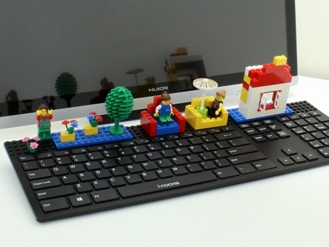 本製品は、フルサイズのUSBキーボードにレゴなどのおもちゃを接続できる凸凹を設けたもの。仕事や生活などで毎日使うキーボードを、楽しく遊び感覚で自由にデザインできる。