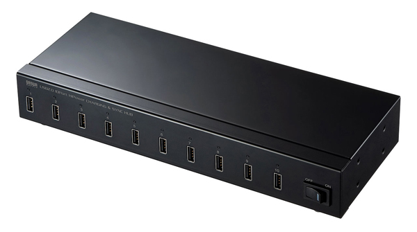 両製品は、多数の機器を同時に充電したり、データの同期やシステムの更新を一括で行ったりすることができるUSB2.0ハブ。出力は1ポートあたり最大2.4Aで、iPadやAndroidタブレットも同時にまとめて充電できる。