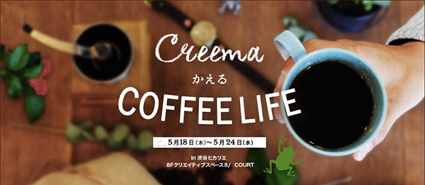 2017年5月18日(木)から5月24日(水)まで、渋谷ヒカリエ 8F COURTにて「Creema かえる COFFEE LIFE」が開催される。ハンドメイドマーケットプレイス「Creema」を運営している株式会社クリーマがプロデュースした新イベント。「コーヒーのある生活をもっと楽しく」をテーマとしており、56組の作家ブランドが集合して、コーヒーライフにまつわるオリジナル作品を展示販売する。時間は11:00〜20:00。
