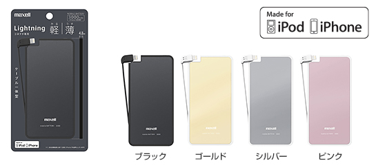 日立マクセル、Lightningコネクタを搭載したモバイルバッテリー「軽薄」を発売