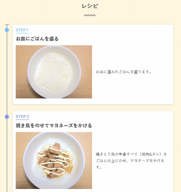 全レシピが掲載されているトップページはタイルスタイルでわかりやすく、タイムライン風のレシピもシンプルな作りで、体力ギリギリなユーザーに配慮したサイトデザインとなっている。
