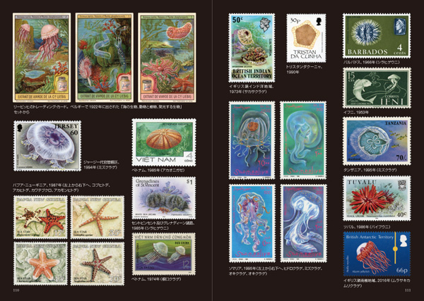 巻末には、各国で発売されたクラゲ・ウニ・ヒトデの登場する切手も収録されており、レトロでアンティークな世界が楽しめる一冊となっている。