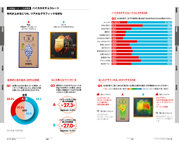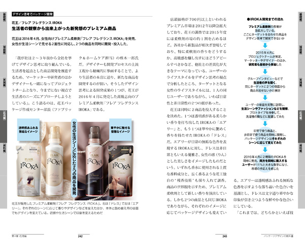 第3版となる本書では「人気商品のパッケージ比較調査」を大幅追加し、デザインが与える付加価値を数値化、パッケージによって顧客が受けるイメージや購買意欲の変化を解りやすく可視化している。ロングセラー商品のデザインの変遷や、デザイン思考を用いた商品開発例なども収録し、100を超える豊富な実例を備えた充実の内容で、デザインのアイデアソースとしても活用できる内容になっている。