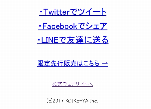 SNSへの投稿も、ソーシャルボタンではなくテキストへのリンクが貼ってあるだけと、突貫工事感が丸出しで、現場の忙しさ・悲鳴が聞こえてきそうなスタイルとなっている。