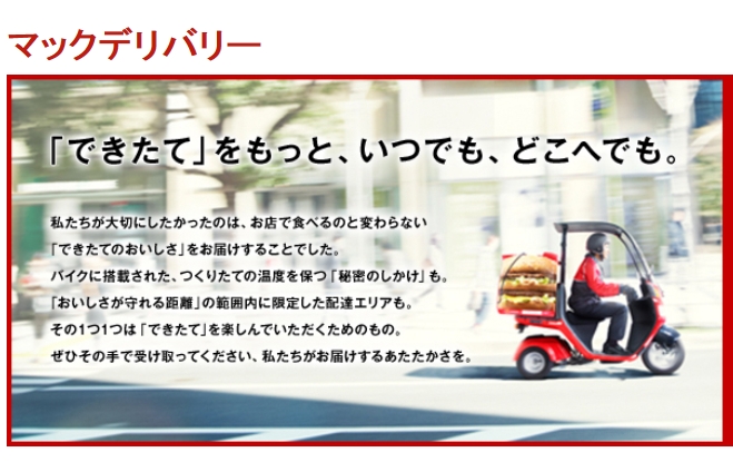 日本マクドナルド株式会社は26日、同社の宅配サービス「マックデリバリー」の拡充策として、Uber社が提供するフードデリバリーサービス「UberEATS(ウーバー イーツ)」を、6月29日からマクドナルドの東京都内33店舗で導入開始すると発表した。