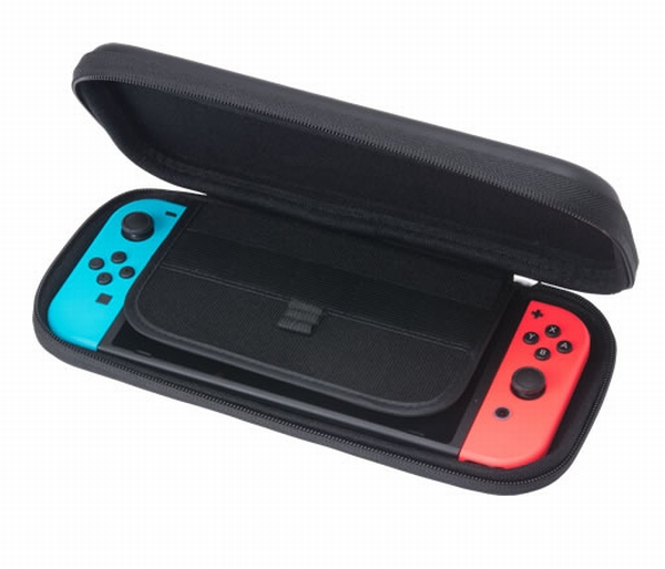 本製品は、ニンテンドースイッチに左右のJoy-Conを搭載時でも、ぴったり収まるスリムタイプのセミハードケース。素材はケース外部PU、ケース内部EVAとなっており、外部からの衝撃からニンテンドースイッチを保護する。