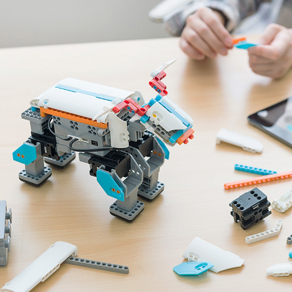 同製品は、3種類以上の形態に組み立てることが可能で、専用アプリ「Jimu」で組立説明や操作、プログラミングなどを行える教育用ロボットのキット。組み立てたロボットは、スマートフォンやタブレットとBluetooth接続することでラジコンのように操作できる。