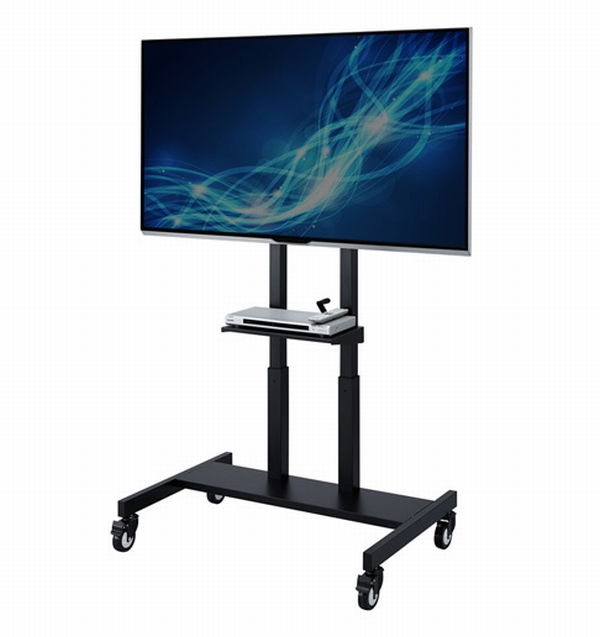 スタンドは、55~65型・重さ60kgまでのディスプレイを設置することができ、ディスプレイを取り付けるブラケット中心位置は、床面からの高さ1400~1660mmで上下させることができる。また、ブラケットは後ろに5°、前に10°傾けることができ、見やすい角度に調節することも可能だ。
