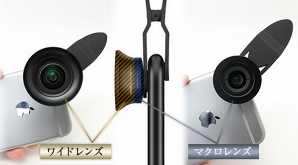 今回、出品されているのは、「2-in-1のワイドレンズ&マクロレンズ」。クリップオンタイプでiPhoneやAndroidなど様々なスマホに取り付けられるレンズで、マクロレンズの上にワイドレンズが装着されているスタイルだ。
