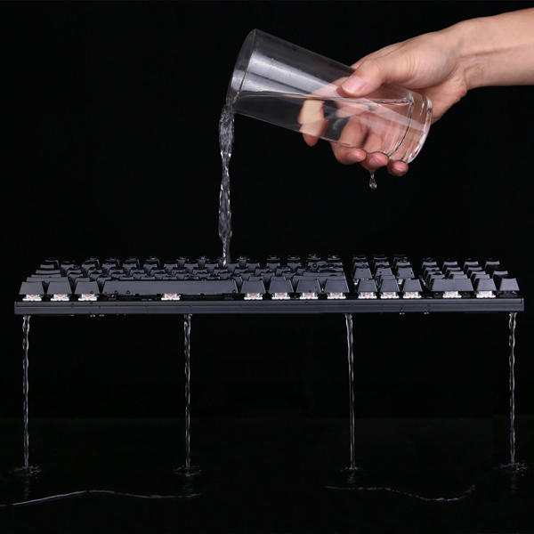 メカニカルスイッチは耐久性に優れ、5000万回のキーストロークにも耐えられる長寿命設計。また、キーボード底面には、5つの排水口を備え、うっかりと水やお茶をこぼしてしまってもすばやい排水が可能。キートップを取り外しての本格的なクリーニングも可能な作りになっている。