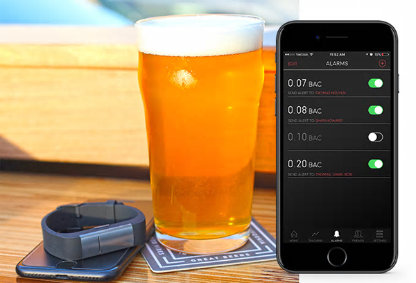 同製品は、腕時計型のデバイスに特殊な電気センサーを内蔵しており、血中アルコール度数をリアルタイムで測定、測定結果をスマートフォンのアプリに送信・保存することができるウェアラブルデバイスだ。
