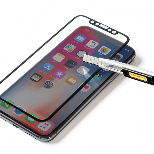 同製品は、iPhone X対応の画面保護強化ガラスフィルム。ラウンド形状を採用しており、画面の縁までしっかりと保護できる。曲面硬度9Hのガラスを採用しているので、カッターでも傷がつきにくい。