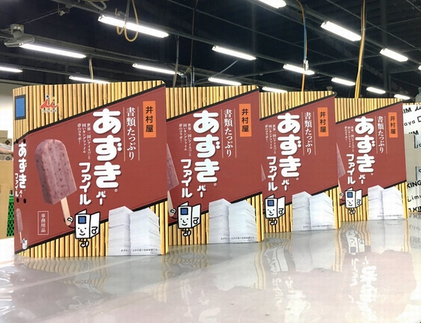 製造は、世界最大級のファイル生産工場・キングジムベトナムで実施。現地スタッフの「なんだコレ」という困惑をよそに、作られたファイルはパイプ式ファイルのキングファイルをベースにした固いファイル。そこにあずきバーがプリントされたデザインが施され、視覚的にも固い感じになっている。