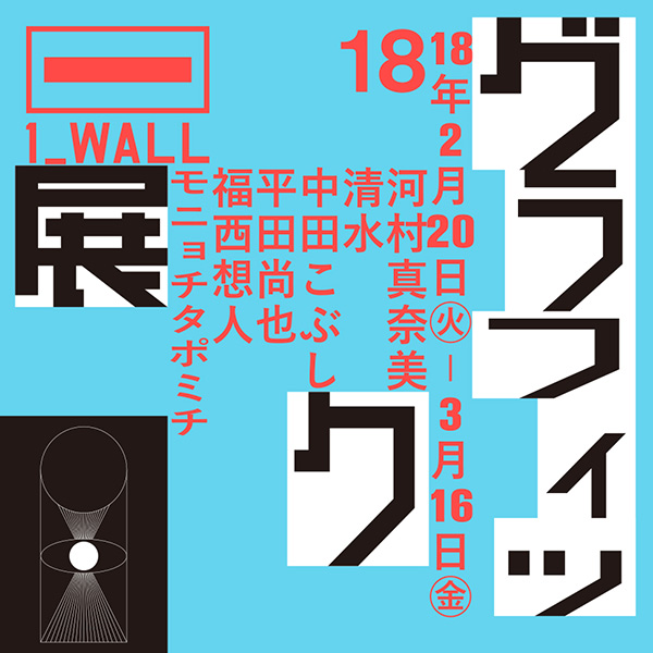 株式会社リクルートホールディングスが運営するギャラリー「ガーディアン・ガーデン」にて、2018年2月20日(火)から3月16日(金)まで、第18回グラフィック「1_WALL」展が開催される。個展開催の権利をかけた恒例の公募展。ポートフォリオ審査による1次審査と、審査員との1対1での対話による2次審査を通過したファイナリスト6名が、1人につき1壁面を用いて作品を発表するグループ展のかたちで開催される。入場無料、日曜休館で、時間は11:00〜19:00。