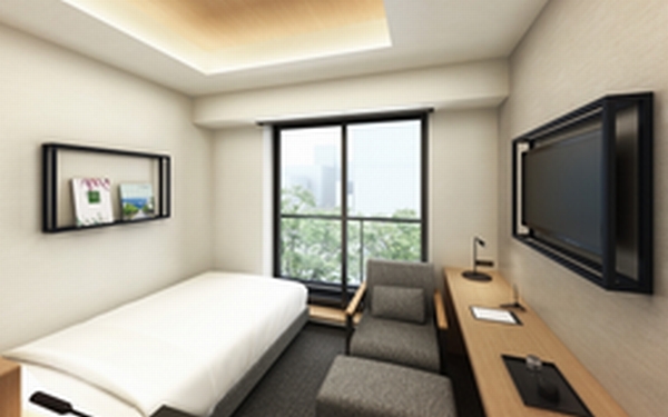 ホテルは総客室数70室で、シングル(13㎡)8000円からモデレートツイン(18㎡)1万5000円まで5タイプの部屋が揃う。