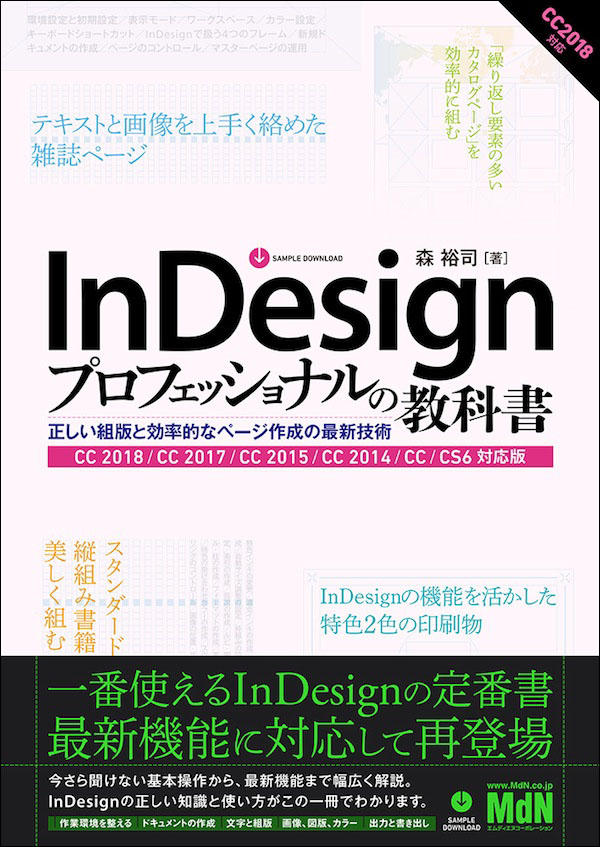 第2部作例データはサンプルとしてダウンロード可能。解説はInDesign CC 2018/CC 2017/CC 2015/CC 2014/CC/CS6に対応している。