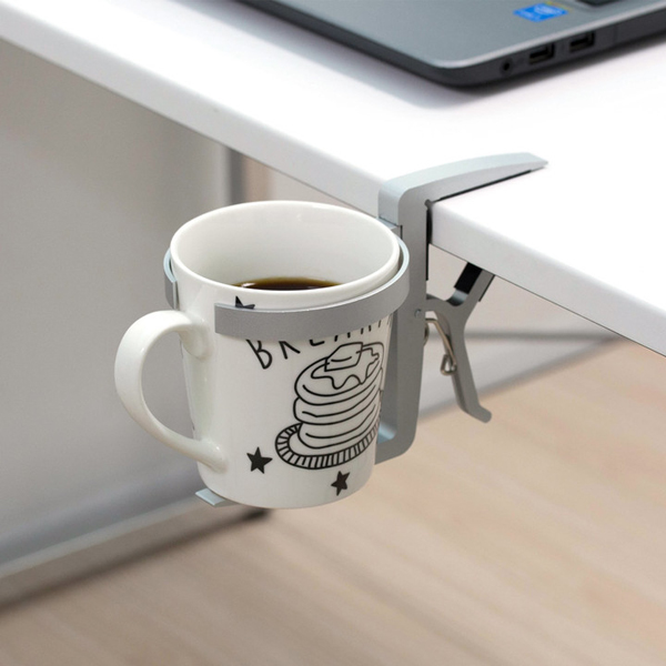 同製品は、デスクを挟んで取り付けるだけで、簡単に専用のカップホルダーとして利用できる製品で、どんなインテリアにもマッチするシックなアルミデザインとなっている。