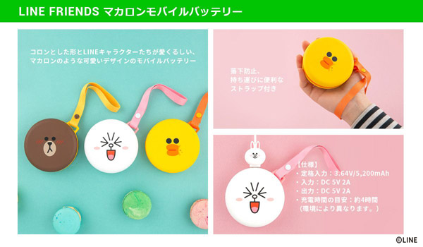 株式会社ロア・インターナショナルは、3月26日、KH VATEC社のLINE FRIENDS(ラインフレンズ)公式ライセンス商品から、マカロンルックなモバイルバッテリー3種を販売すると発表した。価格は4,500円(税抜)。同社運営のECサイトから購入可能である。