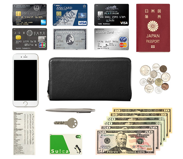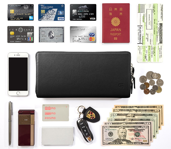 携帯性の良いシングルジップ型の「GRAMAS "SIENA" Singlezip Organizer Wallet」は、“スマートフォンが入るサイフ”をコンセプトに設計された商品。定番長財布サイズの中に見た目以上の収納力を持たせるため、パターンを一から作成しており、スマホはもちろん、パスポートやペンなどもコンパクトに収納することができる。価格は36,000円(税抜)